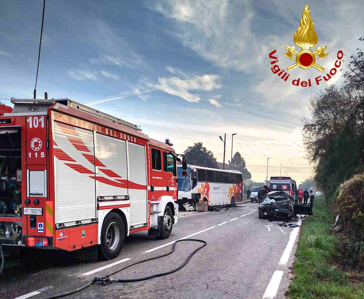 TORINO – Frontale ad Arignano tra un pullman di studenti e un’auto; un morto e 16 feriti